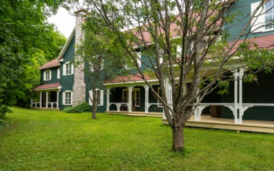 Cette maison au style chic-champêtre est située sur le site du Baluchon Éco-villégiature à quelques minutes en voiture.