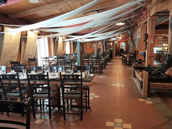 Dans un décor signature conçu à partir d’objets et de pièces mécaniques de l’ancien moulin à scie Damphousse, l’Éco-café Au bout du monde propose un menu qui met à l’honneur les produits de la région, soigneusement travaillés par nos cuisiniers, pâtissiers et boulangers.