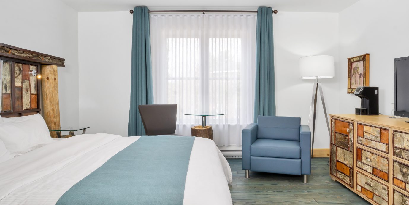 La chambre classique vous offre un lit douillet pour profiter de l’immense domaine du Baluchon, le temps d’un séjour.