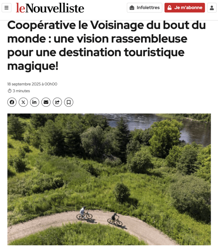«Il y a deux semaines je vous parlais de destinations internationales inspirantes en durabilité en nouveau tourisme. Aujourd’hui, regardons ce qui se fait ici au Québec.»