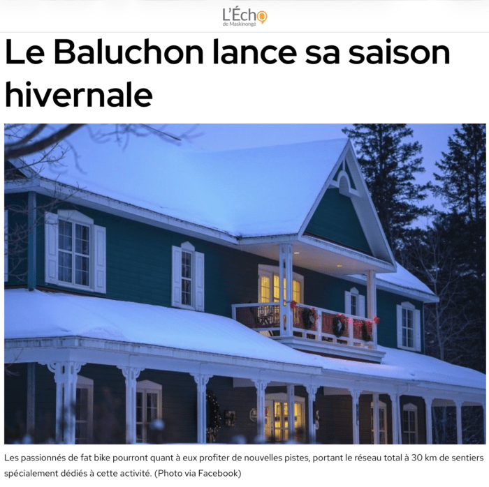 Consultez les derniers articles parus au sujet du Baluchon Éco-villégiature.